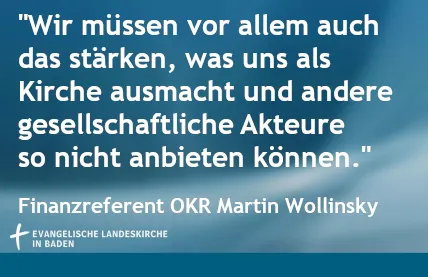 Insgesamt beträgt der landeskirchliche Haushalt dann 470 Millionen Euro für dieses Jahr und 487 Millionen Euro im kommenden Jahr. Trotz notwendiger Sparmaßnahmen werde die badische Landeskirche "weiterhin in der sogenannten Fläche präsent und damit Volkskirche bleiben". Angesichts der Rahmenbedingungen bedeute das jedoch auch, nicht "überall alles" zu machen, erklärte Wollinsky: "Wir müssen vor allem auch das stärken, was uns als Kirche ausmacht und andere gesellschaftliche Akteure so nicht anbieten können."