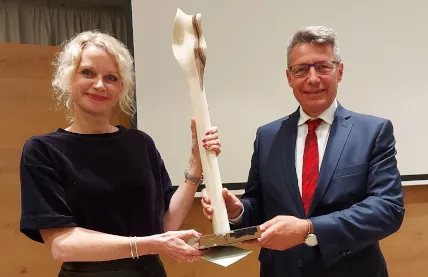 Karlsruhe/Bad Herrenalb, (25.10.2021). Pfarrerin Dr. Anne Helene Kratzert (Karlsruhe) ist zusammen mit dem Kirchenbezirk Karlsruhe mit dem Gottesdienstpreis der Stiftung zur Förderung des Gottesdienstes ausgezeichnet worden. Die Preisverleihung fand im Rahmen der Herbsttagung der Landessynode in Bad Herrenalb statt.