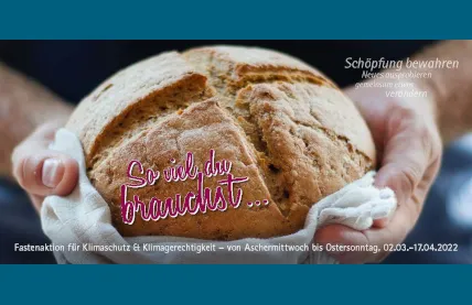 Auch die Evangelische Landeskirche in Baden ermutigt dazu, sich in der Passionszeit an der Aktion Fasten für Klimaschutz und Klimagerechtigkeit zu beteiligen. Jeden Mittwoch und Freitag gibt es dazu digitale Veranstaltungen, die unter www.klimafasten.de zu finden sind, so beispielsweise aus Baden am 18. März die Veranstaltung „Gemeinsam nachhaltig kochen“ und am 23. März ein Abend zum Thema „Geschmack der Region - schützt Regionalität das Klima?“
