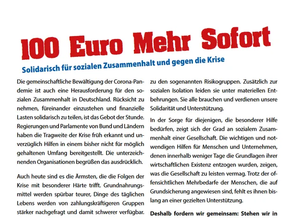 Bündnis gegen Altersarmut unterstützt Forderung nach 100 Euro Corona-Soforthilfe für ärmere Menschen