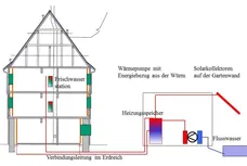 Die Wärme für den Heizenergiebedarf wird mit einer Wärmepumpe gewonnen, die über einen Wärmetauscher das Wasser der vorbeifließenden Würm nutzt. Ein solarthermischer Vakuumkollektor ergänzt das Heizkonzept.