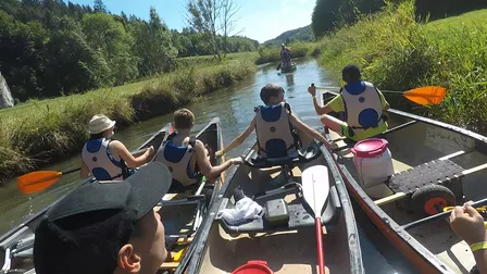 Auch unser zweiter Hauptprogrammpunkt hat etwas mit Wasser zu tun und führt uns zum Neckar. Dort starten wir eine Kanutour, bei der wir verteilt auf mehrere Kanus insgesamt ca. 6 km über den Fluss paddeln.