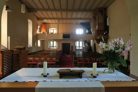 Kleine Dorfkirche mit schlichter Ausstattung
