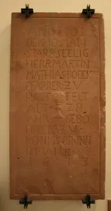 Die links an der Ostwand des Hauptschiffes angebrachte Grabplatte erinnert an Martin Matthias Boeckh, der von 1698 bis 1701 Pfarrer in Hagsfeld war. Er setzte sich stark für die Wiederherstellung der Laurentius-Kirche ein, die durch Kriegswirren schwer beschädigt war.