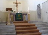 Bei der Kirchenrenovierung in den Jahren 1958 und 1959 wurde der geschnitzte Kasten-Altar in der Apsis durch ein schlichtes Ensemble aus einem steinernen Tisch-Altar nebst Ambo und einem einfachen hölzernen Kruzifix ersetzt. Neben dem Altar befindet sich in der Seitenwand der Apsis das Epitaph der Magdalena von Angelach; das Geschlecht der Herren von Angelach – oder auch Angelloch – lebte vom Beginn des 13. bis Anfang des 17. Jahrhunderts in Waldangelloch. Sie erbauten auch das Schloss, das heute als romantische Ruine den „Schlossbuckel“ oberhalb der Ortschaft ziert. Aus dem Schloss stammt ebenfalls das blaue Wappen mit dem Angelhaken derer von Angelach im Kirchengewölbe.