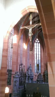 Überhaupt bildet der Chorraum mit seinen Denkmälern den wohl eindrucksvollsten Teil der Stiftskirche. Der ursprüngliche Lettner, der den Chor der Stiftsherren von der übrigen Gemeinde abtrennte, ist heute zwar nicht mehr vorhanden. Dafür hängt das große Kruzifix aus dem Jahr 1682 heute wieder an seinem ursprünglichen Platz im Triumphbogen, nachdem es von 1957 bis 2007 hinter dem Altar stand.