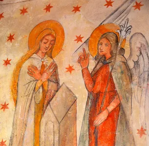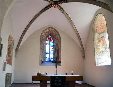 Einen kleinen kunsthistorischen Schatz stellen die sechs frühgotischen Wandfresken in den Fensternischen des Chores dar, die erst im Jahr 1908 durch den Boxberger Pfarrer Wilhelm Walter wiederentdeckt wurden. Entstanden sind die Bilder vermutlich um das Jahr 1450 im Zuge des Neubaus unter den Rosenbergern. Ihre genaue Entstehungszeit und ihre Schule sind bislang allerdings noch nicht erforscht.