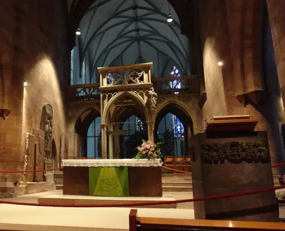 Der Altarraum wird vom Lettner überragt, der Kirchenschiff und Chor voneinander trennt. Ursprünglich schied der Lettner Laien- und Chorherrenbereich und fungierte so als „soziale Schranke“ zwischen Volk und Klerus.
