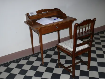 Auf der Nordseite des Langhauses steht im hinteren Drittel ein kleiner Tisch mit einem Gästebuch.