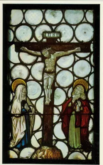 Das ausgewählte Glasfenster aus dem Jahre 1496 zeigt die Kreuzigung Jesu Christi, begleitet von Maria und Johannes. Mehrere solcher Fenster wurden von den Gebrüdern Ludwig und Bartholomäus von Hoeneck gestiftet.